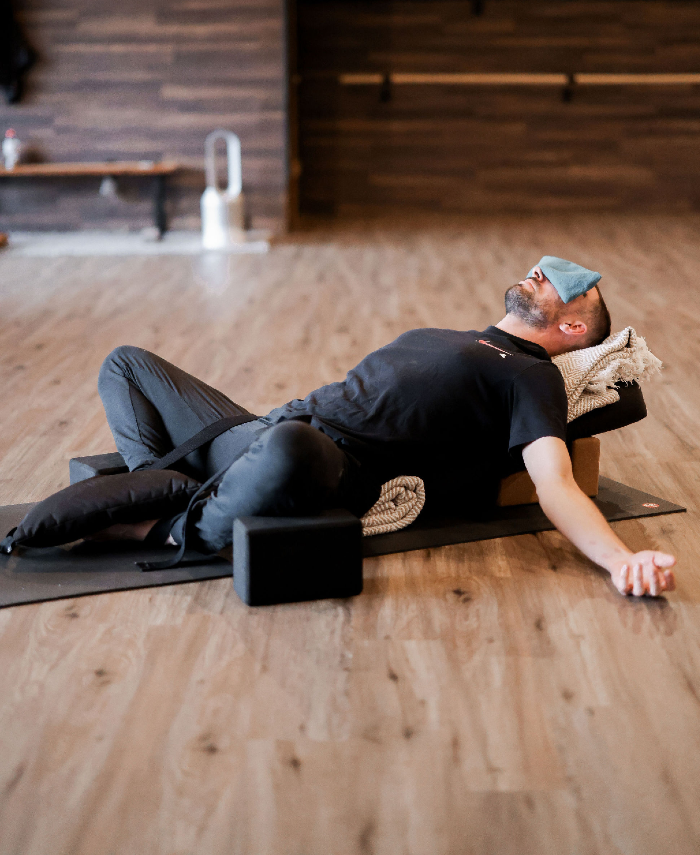In class, we use props like blankets, bolsters, and blocks to fully support your body. Each pose is held for several minutes, giving your muscles permission to soften and your mind the chance to slow down. There’s no need to push or achieve — the practice is about comfort, quiet, and allowing your body to do the healing work naturally.